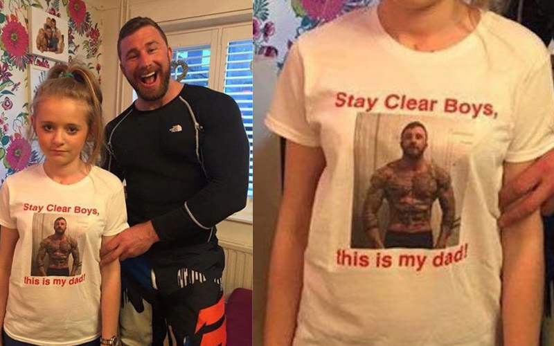8. After his daughter saying this “Dad, you’re embarrassing me” he made her wear a shirt like this.