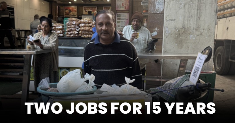 The man, known locally as Raju, has been selling batter outside Lalbagh for at least 15 years. His day starts early, as he runs his stall from around 6 am to 10 am. Once he packs up, his workday is far from over. He then heads off to another job, spending the rest of the day as an employee elsewhere. Two jobs, back to back, day after day, without fuss or complaint.